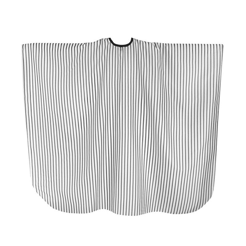 Profesionální pláštěnka vhodná do barber salónu s šedými proužky.